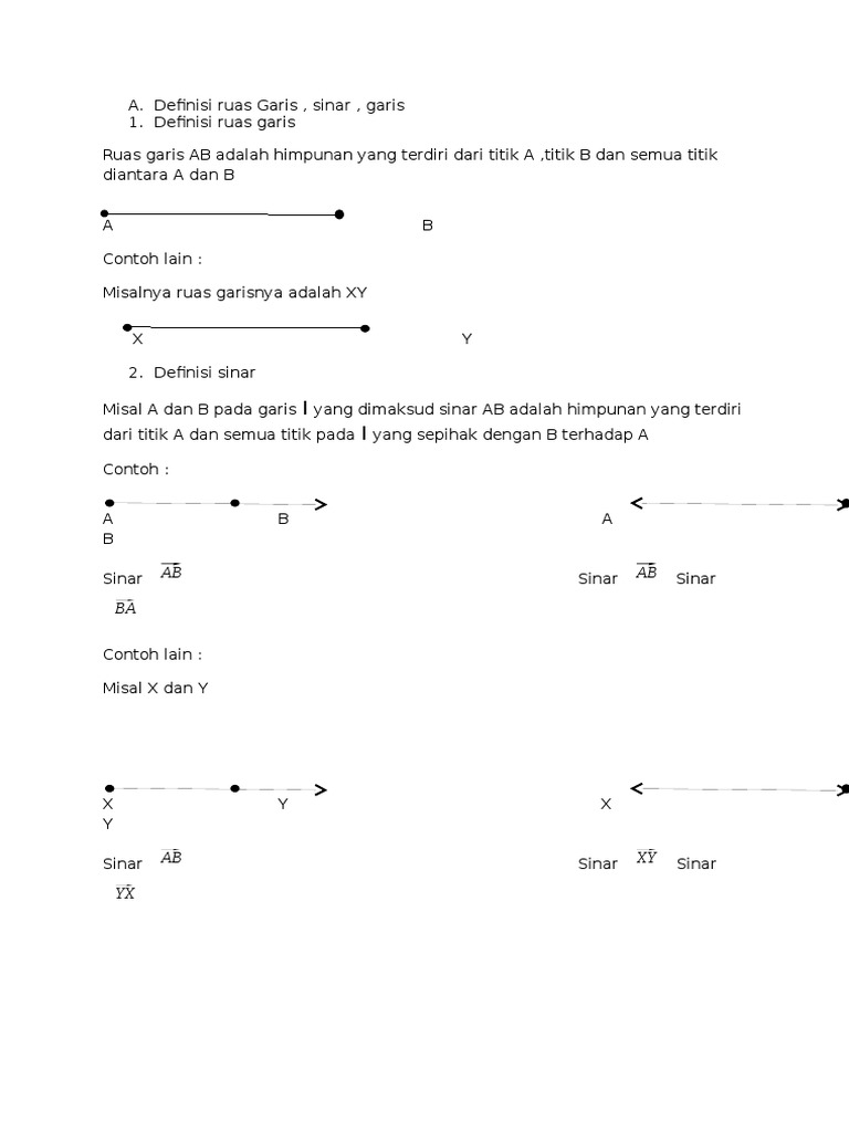 Garis merupakan suatu himpunan titik, dengan kata lain suatu garis penuh dengan titik. Sinar adalah separuh garis (halfline) sehingga sinar memiliki 1 arah.