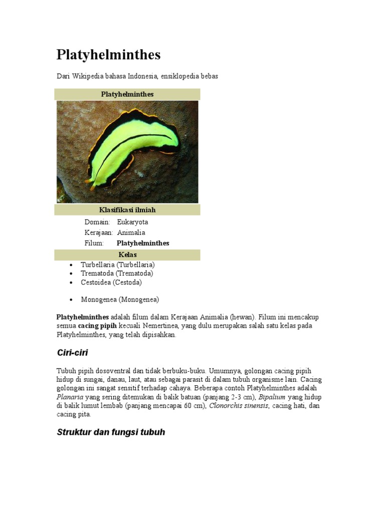 Jika contoh yang sebelumnya dibahas merupakan. Pengertian, ciri, struktur, klasifikasi, siklus, manfaat dan penyakit beberapa spesies platyhelminthes dapat menimbulkan penyakit pada manusia dan hewan. Platyhelminthes classis maka terdapat banyak hewan platyhelminthes.