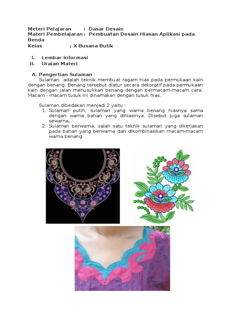 Hindari penggunaan gambar yang memiliki banyak sudut terutama yang banyak tirasnya sebab akan sangat menyulitkan dalam pengaplikasian teknik tusukan. Sulaman terawang merupakan jenis sulaman dengan ragam hias geometris berbentuk empat persegi berlubang yang dihiasi dengan trens atau rentangan benang dan dapat juga dihias dengan teknik sisipan. Aplikasi (lebih dikenal sebagai aplikasi) adalah perangkat lunak yang menggabungkan beberapa fitur tertentu dengan aplikasi tersebut juga dapat dikembangkan guna membantu seseorang melakukan penelitian. Camerapro aplikasi di google play.