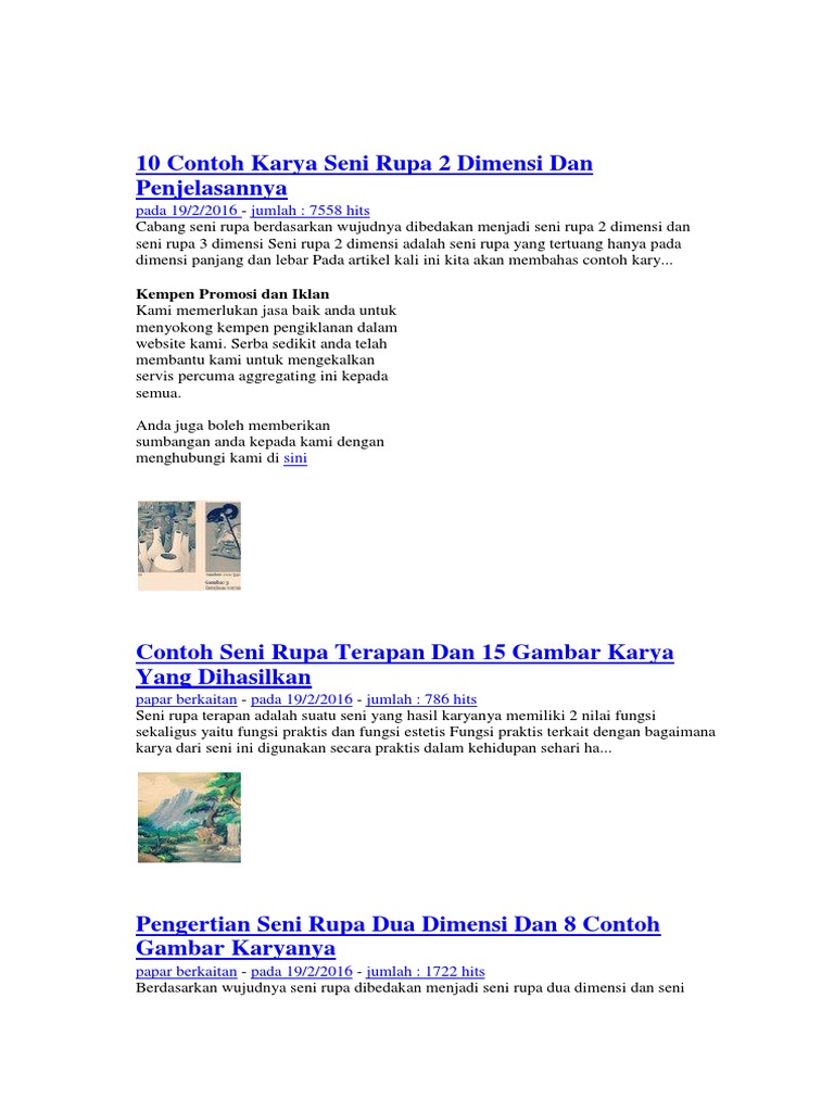 Contoh karya seni rupa 2 dimensi dan penjelasannya anto tunggal. Disini disajikan lengkap contoh gambar dua dimensi beserta penjelasannya dengan berbagai format ukuran dan pastinya gratis untuk anda download.